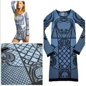 SEO Keywords: Intimately Free People, bodycon dress, mini dress, long sleeve, geometric, party dress, night out, fitted dress, designer dress, unique dress.