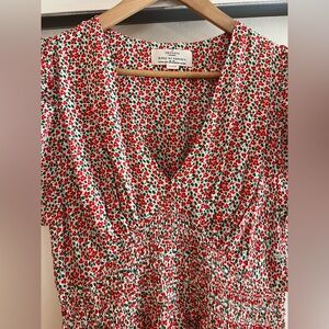 New! Trovata Birds of Paradis Camilla Dress Carmine Ditsy Mini Floral Red Green