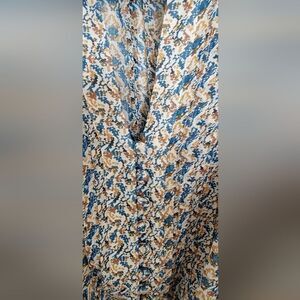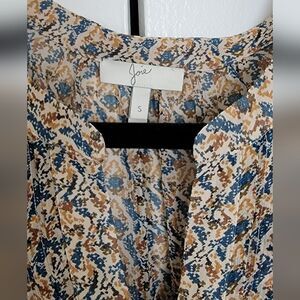 Joie Silk Dress with cotton nudes slip and belt tie to cinch wiast.