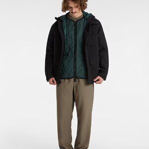 VANS OFF THE WALL MTE WARD 3-1 UTILITY JACKET BLACK/GREEN MENS XXL NEW SKATE MENS SIZE XXL NEW Description Vans MTE is the byproduct of a lifetime spent outdoors, because we know that the pursuit of your passions isn’t always accompanied by a fair-weather forecast. Rain, sleet, snow, mud, wind-nothing is going to stand between you and your next adventure. In fact, we like to think these all add a bit of flavour to the experience. It’s why we created MTE in the first place. Offering protection from the elements with classic Vans styling, the MTE Ward 3-1 Utility Jacket features Durable Water Repellent coating, DuPont™ Sorona® fill and has a hidden snap closure at the front. It also has a hood, long sleeves, two chest pockets and a lower body pocket. • Shell: 100% Nylon oxford with 3K DWR • Lining: 100% Recycled polyester • Removable liner with DuPont™ Sorona® fill Details and composition Style VN000HN9DRJ 100% NYLON