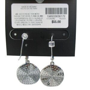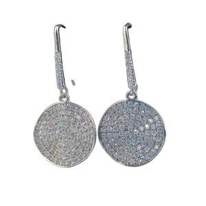 WHBM Pave Crystal Silvertone Drop Disk Earrings Handcrafted NWT