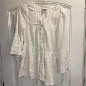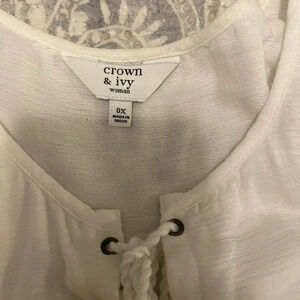Women's Crown & Ivy White Eyelet Boho Peasant boho Tunic Tie Neck Plus Size 0X