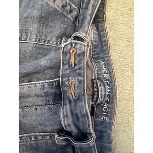 Classic American Eagle bootcut jeans in size 14 Regular. Medium wash with a comfortable mid-rise and Next Level Stretch denim. Front patch pockets add a flattering, retro-inspired touch.
