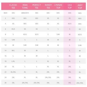 Size chart in picture with fit and style