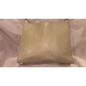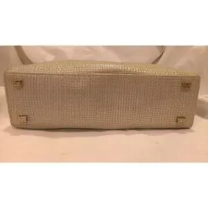 ESCADA Pearlized Light Olive Green & Silver Pearl Woven Leather Handbag