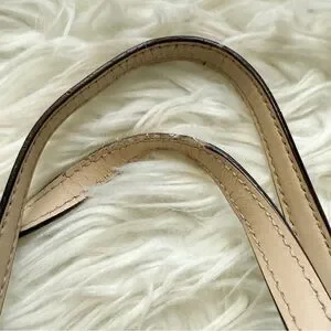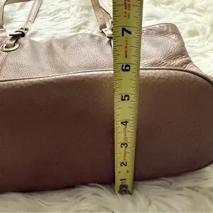 Smoke free home. This purse has been used a lot and shows signs of wear but has lots of life left. The leather is very soft and in great shape. The handles have some cracking and there is staining on the inside.