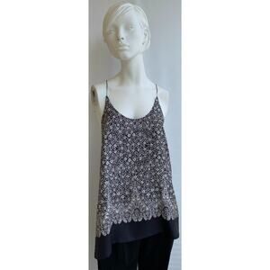 HELMUT LANG sz L Silk Backless Tank Top Cross Straps Persian Floral Black White
