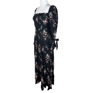 Reformation Aubrey Black Floral Print Midi Dress Tied Cuff Sleeves Slit Size 0