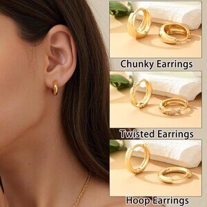 Gold Earrings Set Size These chunky hoops are 10 mm 15 mm 19 mm, it adopts a safe and strong top buckle and puncture design, it is very easy and comfortable to put on.