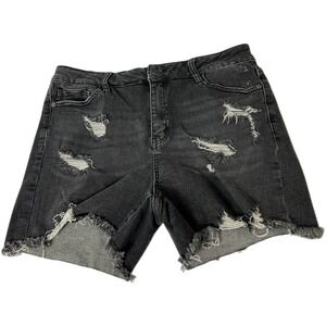 Judy Blue Black Denim Cut Off Shorts Size XL JB150004 Distressed Mid Rise Women