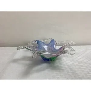 Excellent condition MCM Lavorazione Arte Murano HAND BLOWN Pastel Star Shaped Glass Bowl Candy Dish. No flaws.