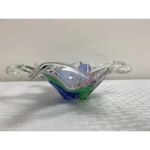 MCM Lavorazione Arte Murano HAND BLOWN Pastel Star Shaped Glass Bowl Candy Dish