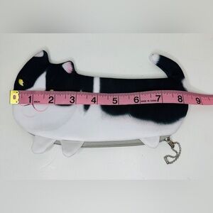 Dimensional Black & White Cat Zipper Pen Case Makeup Pouch Tool Bag Pencil Organizer in good pre owned condition. See photos for measurements.