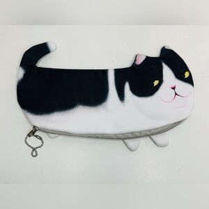Dimensional Black & White Cat Zipper Pen Case Makeup Pouch Pencil Bag