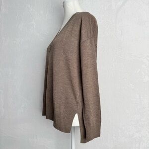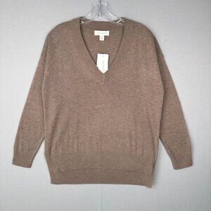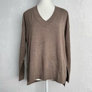 TREASURE & BOND Relaxed V Neck Sweater XS Brown Drop Shoulder High Low Tunic New