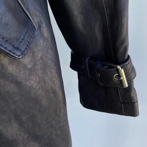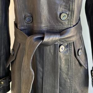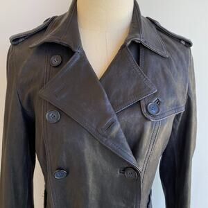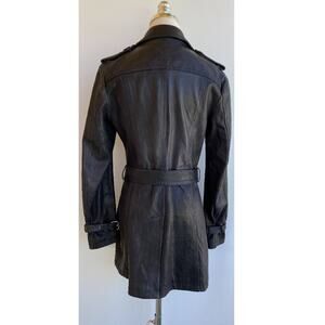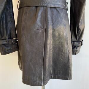 Vincent's Gunmetal Leather Peacoat Trenchcoat Italian Artisan sz 42, US 4-6