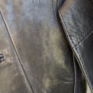Italian artisan leather peacoat by Vincent's. Gunmetal color. All leather, fully lined. Double-breasted peacoat with buttons and pockets. It is gorgeous in person. I've been selling full-time for 12 years and have sold over 4000 items. This leather coat is one of the finest leather coats I've had in my inventory. The lines and attention to detail are fantastic. Some minor scratches to leather (see close up photos) but nothing major. No holes, tears, or discoloration. It's an Italian size 42 and fits a US 4-6.