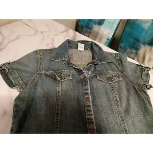 vintage Old Navy denim Dress Y2K fashion era short-sleeve denim shirt dress Sz 6