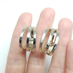 Vintage Silver Tone Hoop Earrings, Striped Openwork Design, Retro Estate