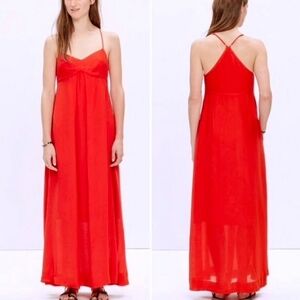 Madewell Red Orange Empire Strappy Maxi Dress Lined