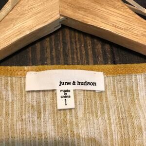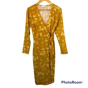 June and Hudson Wrap Dress Women’s Size Large Midi Mustard Yellow Tie Dye