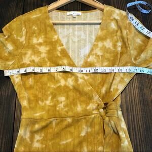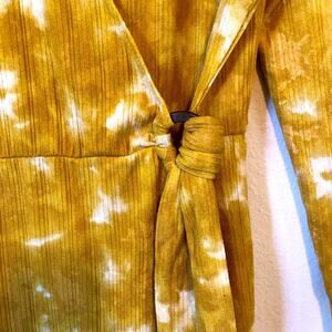 Ribbed Wrap Mustard Yellow Tie Dye Wrap Dress Woman’s Size L Elastic Waist