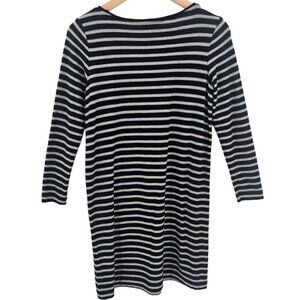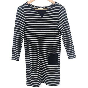 J. Jill Black Grey Knit Striped Shift Dress with Pocket Detail