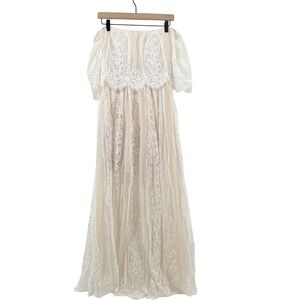 Baltic Born Caroline Lace Maxi Dress Off Shoulder Bohemian Off White Large