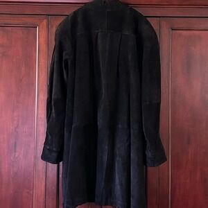 Ellen Ashley Black Vintage Suede Open Front Relaxed Fit Swing Coat Womens Size S