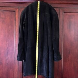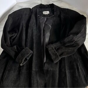 Ellen Ashley Vintage 90's Black Suede Leather Oversized Relaxed Fit Open Front Long Sleeve Duster Swing Coat Womens Size Small