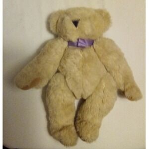 Vermont Teddy Bear Co.Classic Jointed Teddy Bear Plush Purple Ribbon Handmade