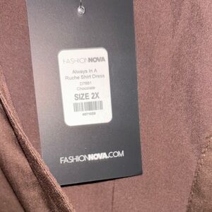 Chocolate Long Sleeve Ruche Shirt Dress - Chocolate Dress