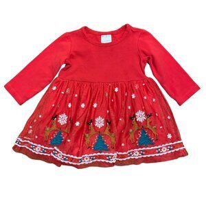 HANNA ANDERSSON Christmas Dress Baby Girls 3-6 Embroidered Reindeer Tulle Infant