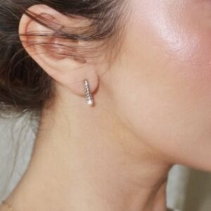 Dazzling U Shaped Pave Zirconia Hoop Earrings With 18K Gold Plating.