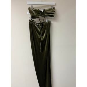 Ronny Kobo x Revolve Freya Velvet Bra Top & Blythe Maxi Skirt Set Olive Size S