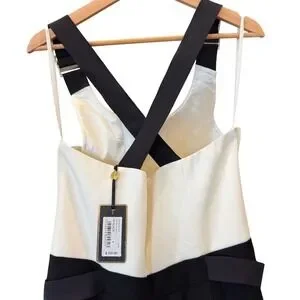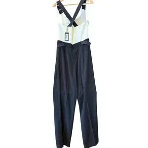Keywords: Ted Baker, Jumpsuit, Culottes, Wide Leg, Ivory, Black, Crossback, Designer, Elegant, Contemporary, Dressy, Statement, Size 5, Sleeveless, Two Tone