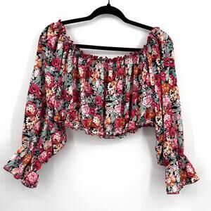 Off-Shoulder Neckline Cropped Top Women's 2XL Multicolor Floral Boho Chic Flowy
