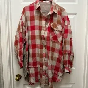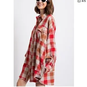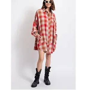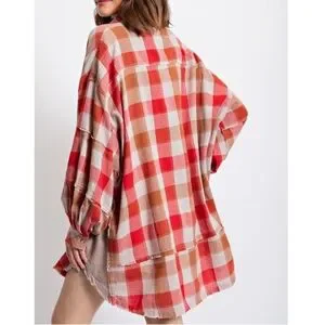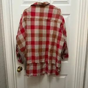 Red and Tan Plaid Button Down oversized shirt