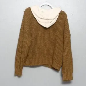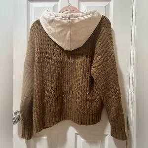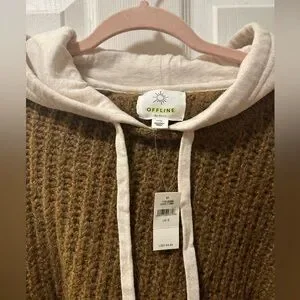 Aerie offline nwt cotton hood brown soft fuzzy sweater Small