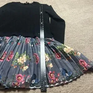 Ted Baker Izitaa Oracle Knit Skater Dress Pleated floral Print Skirt SZ 3