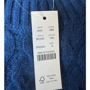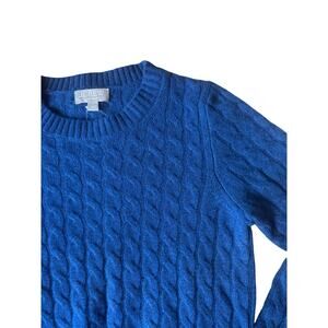 You'll love this cozy, brand new J.Crew 100% Cashmere Shrunken Cable-knit Crew Neck Sweater in a beautiful blue color! It's the perfect addition to your wardrobe for a touch of classic style and warmth.