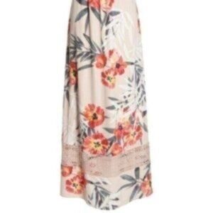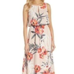 NWT ADRIANNA PAPELL Tropical Breeze Print Maxi Dress In Light Pink Multi
