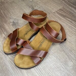 Papillio Birkenstock Cognac Brown Leather Lola Ankle Strap Narrow Wedge Sandals
