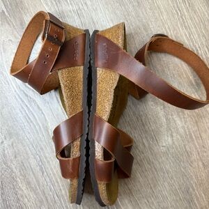 Papillio Birkenstock Cognac Leather Lola Strap Wedge Sandals Size 38 Narrow