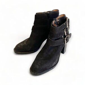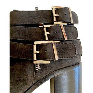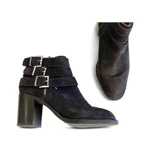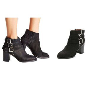 Jeffrey Campbell 3 buckle Rayburn Black Nubuck Ankle Boot Size 7.5