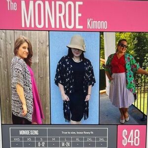 LuLaRoe Blue and Purple Floral Monroe Kimono with Black Fringe NWT