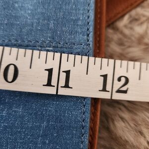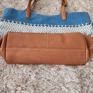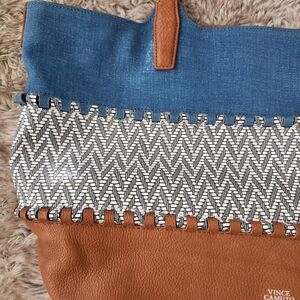 Vince Camuto Edena Tote Blue and Brown Leather and Denim Colorblocked Bag