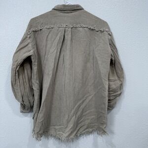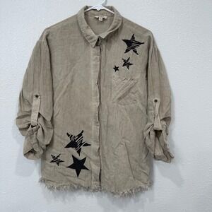 Umgee USA Women's Khaki Star Print Distressed Button Up Shirt Size S