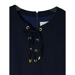 Eliza J Navy Lace-Up Neckline Sheath Dress Lined Side Slits Size-12