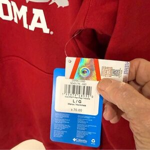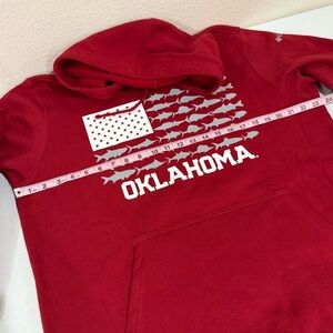 NWT Columbia PFG Oklahoma Fishing USA Flag Hoodie Red Pullover Men’s Size Large